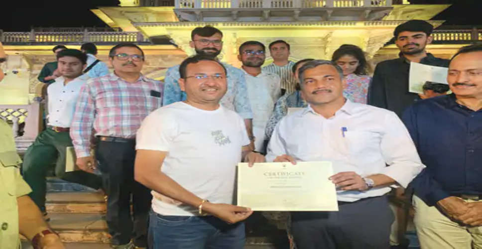 बांसवाड़ा न्यूज़ डेस्क, विश्व पर्यटन दिवस के उपलक्ष्य में 27 सितंबर को जयपुर के अल्बर्ट हॉल म्यूजियम में आयोजित समारोह में बांसवाड़ा के नेचर फोटोग्राफर भरत कंसारा को उप मुख्यमंत्री दिया कुमारी और पर्यटन विभाग के कमिश्नर विजय पाल सिंह ने प्रशस्ति पत्र देकर राज्य स्तर पर सम्मानित किया।