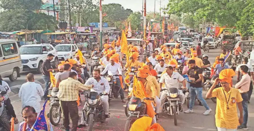 आधा किलोमीटर लंबी शोभायात्रा में पांच सजीव झांकियां शामिल हुईं। इसमें मोंटी नटराजन ग्रुप दिल्ली द्वारा राम दरबार के अलावा राधा-कृष्ण, शिव दरबार, कालिका माताजी आदि की झांकियां वाहनों में प्रदर्शित की गईं। दोपहिया वाहनों पर भगवा पगड़ी पहने युवा नारे लगा रहे थे।