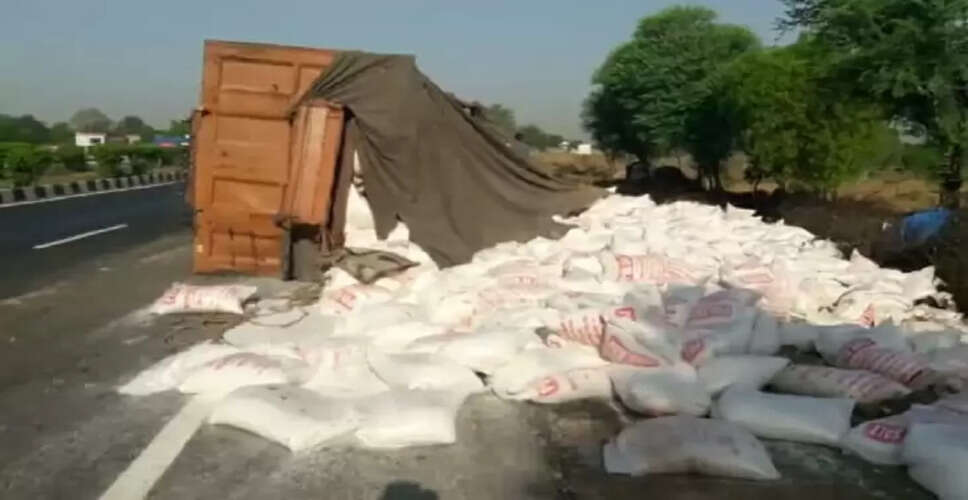 Dausa चालक को आयी झपकी, हाईवे पर पलटा नमक से भरा ट्रेलर