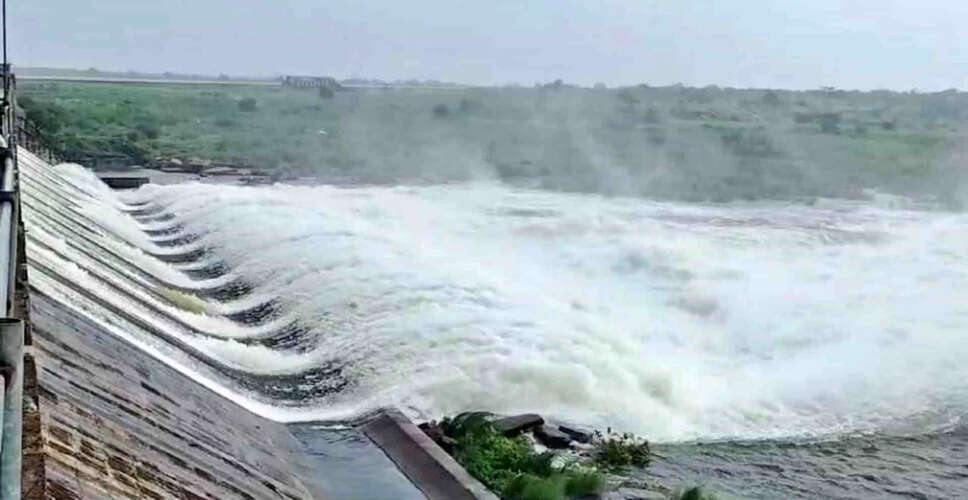 Dholpur, Rajasthan: Due to continuous rainfall in the region and rising inflow in the Parvati River, 10 gates of the Parvati Dam were opened simultaneously at 11:30 PM on Friday. As of now, 2 gates have been closed while water is still being released through the remaining 8 gates pic.twitter.com/bj97FbNDnK