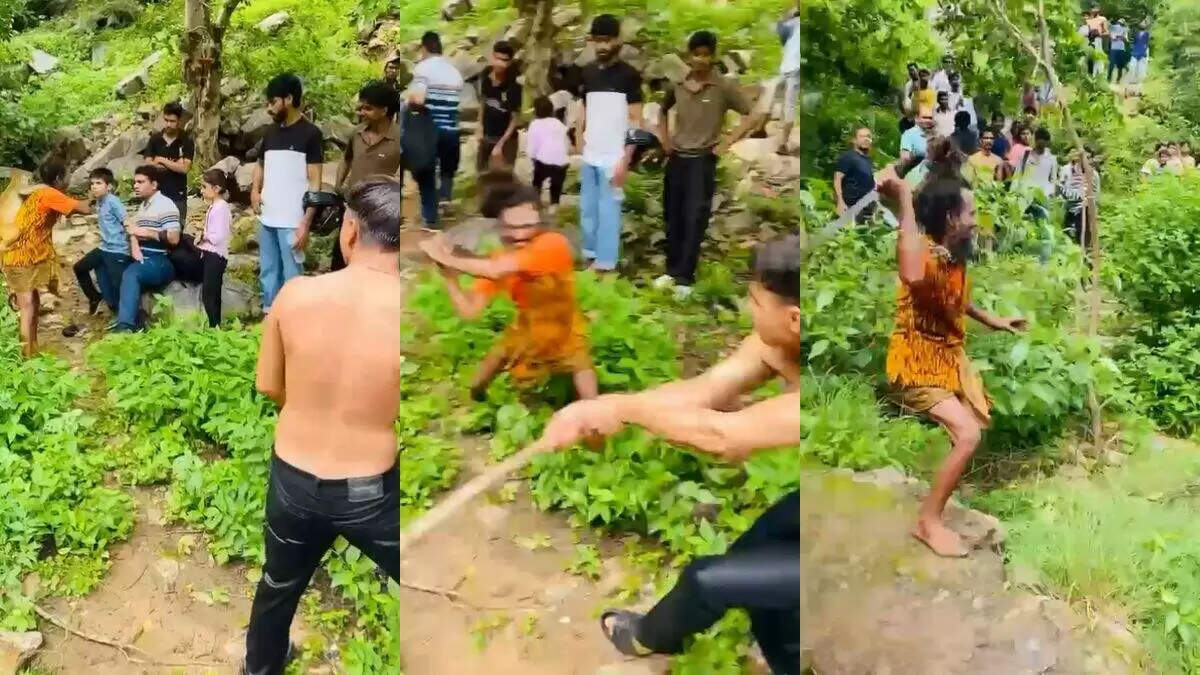 इस घटना का वीडियो किसी पर्यटक द्वारा मौके पर बनाया गया, जो सोमवार को इंटरनेट मीडिया पर वायरल हो गया। वीडियो में साफ देखा जा सकता है कि बाबा गुस्से में पत्थर फेंक रहे हैं और युवक उनसे बचते हुए झरने से बाहर निकल रहे हैं।