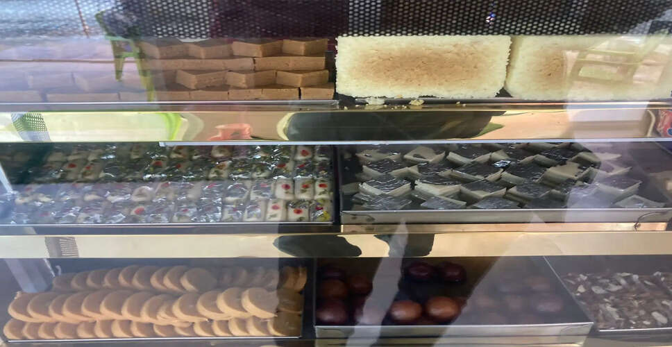 बिक्री के लिए रखी मिठाई के डिब्बों पर निर्माण की तिथि अंकित नहीं