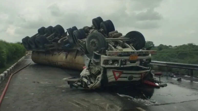 ब्यावर में बड़ा हादसा, केमिकल टैंकर पलटने से चालक की मौत, बचाने गए एसआई हेमंत पालावत भी झुलसे