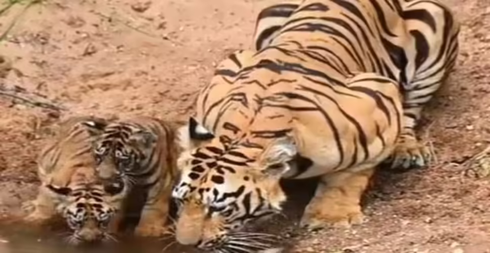 जयपुर में झालाना में दो नन्हें शावक अपनी माँ के साथ पानी पीते दिखे, मनमोहक दृश्य