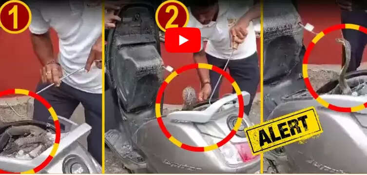 कोटा में एक स्कूटी की सीट के नीचे एक कोबरा घुस गया, जिसे बड़ी मशक्कत से स्नैक कैचर के जरिए पकड़कर जंगल में छोड़ा। दरअसल, कोटा के वर्धमान महावीर ओपन यूनिवर्सिटी परिसर में एक बाइक में घुसे कोबरा का रेस्क्यू कर बाहर निकलवाना स्कूटी सवार भाई-बहन को महंगा पड़ गया। स्कूटी सवार सोनू और उसकी बहन ने मोटरसाइकिल से कोबरा को निकलवाने में हेल्प की लेकिन मोटरसाइकिल से बाहर निकलकर कोबरा स्कूटी के अंदर घुस गया। जिसके बाद स्नैक केचर गोविंद शर्मा को बुलवाया गया। उन्होंने कड़ी मशक्कत के बाद 3 फीट लंबे ब्लैक कोबरा का रेस्क्यू किया और लाडपुरा के जंगल में उसे छोड़ आए। इसका वीडियो सोशल मीडिया पर जमकर वायरल हो रहा है।