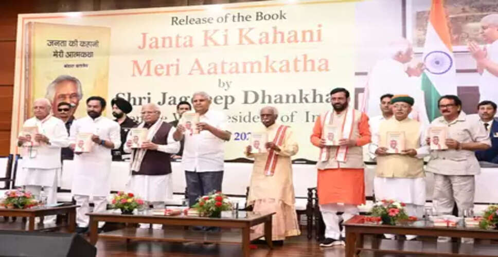उपराष्ट्रपति कार्यालय ने सोशल मीडिया प्लेटफॉर्म 'एक्स' पर लिखा, "उपराष्ट्रपति जगदीप धनखड़ ने आज न्यू महाराष्ट्र सदन, नई दिल्ली में हरियाणा के राज्यपाल बंडारू दत्तात्रेय जी द्वारा लिखित पुस्तक "जनता की कहानी मेरी आत्मकथा" का विमोचन किया।"