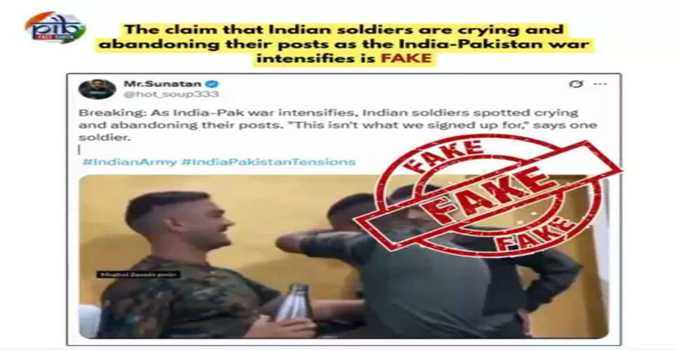 इसी क्रम में पीआईबी फैक्ट चेक ने सोशल मीडिया प्लेटफॉर्म 'एक्स' पर एक भ्रामक दावे को खारिज किया है, जिसमें दावा किया गया था कि भारत-पाकिस्तान तनाव बढ़ने के कारण भारतीय सैनिक रो रहे हैं और अपने पद छोड़ रहे हैं। पीआईबी ने स्पष्ट किया कि वीडियो में दिखाए गए युवा इंदौर की एक निजी रक्षा कोचिंग संस्थान, इंदौर फिजिकल अकादमी के छात्र हैं, जो भारतीय सेना में चयनित होने की खुशी में भावुक हो रहे थे।