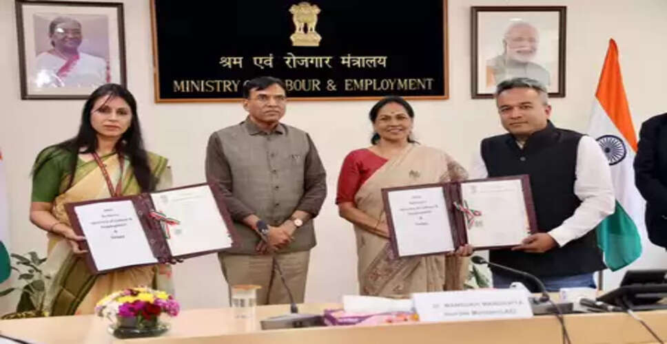 नई दिल्ली, 15 अप्रैल (आईएएनएस)। श्रम एवं रोजगार मंत्रालय ने रोजगार को बढ़ावा देने के लिए मंगलवार को राष्ट्रीय करियर सेवा (एनसीएस) के तहत स्विगी के साथ समझौता ज्ञापन पर हस्ताक्षर किए। इस अवसर पर केंद्रीय मंत्री मनसुख मांडविया भी मौजूद रहे।
