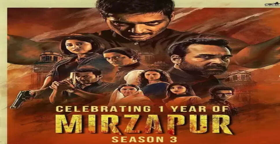 मुंबई, 5 जुलाई (आईएएनएस)। अभिनेता अली फजल ने वेब सीरीज 'मिर्जापुर 3' के एक साल पूरे होने पर सोशल मीडिया पर एक पोस्ट शेयर कर पुरानी यादों को ताजा किया और सभी को-एक्टर्स को धन्यवाद दिया।
