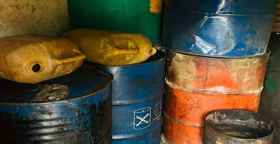 परसाद सलूबर जिला डीएसटी टीम, सराडा डिप्टी व परसाद थाना पुलिस ने बडी कार्रवाई करते हुए नेशनल हाईवे 48 पर होटल की आड में डीजल व केमिकल के अवैध धंधे का खुलासा करते हुए चार हजार लीटर डीजल, साढे़ सात सौ लीटर केमिकल जब्त किया। जानकारी के अनुसार बुधवार को उदयपुर-अहमदाबाद नेशनल हाइवे 48 पर बारा के ढाकणिया महूडा स्थित होटल शेखावाटी पर डीजल व केमिकल को अवैध तरीके से बेचने और खरीदने की सलूबर डीएसटी को सूचना मिली। इस पर त्वरित कार्रवाई करते हुए दोपहर करीब दो बजे डीएसटी से राकेश कुमार, अशोक शेरावत व टीम, सराडा वृत्ताधिकारी मदनलाल विश्नोई, परसाद थाना से एएसआई भेरूसिंह, हेड कांस्टेबल गोविन्दलाल, बंशीलाल की टीम ने दबिश दी। जिस पर होटल के एक कमरे में बड़ी टंकियों में भरा तीन हजार लीटर व होटल के बाहर एक टैंकर में भरा तेरह सौ लीटर, कुल चार हजार तीन सौ लीटर डीजल तथा 780 लीटर विभिन्न प्रकार का ज्वलनशील केमिकल बरामद किया। टीम ने बरामद डीजल, केमिकल व टैंकर जब्त किया। सराडा वृताधिकारी ने अवैध रूप से डीजल व केमिकल के मामले में प्रकरण दर्ज कर अग्रिम कार्रवाई के लिए जिला रसद अधिकारी विनोद कुमार परमार को रिपोर्ट दी। मौके पर पहुंचे जिला रसद अधिकारी ने जब्त डीजल व वाहन को परसाद थाना पुलिस की निगरानी में रखवाया।